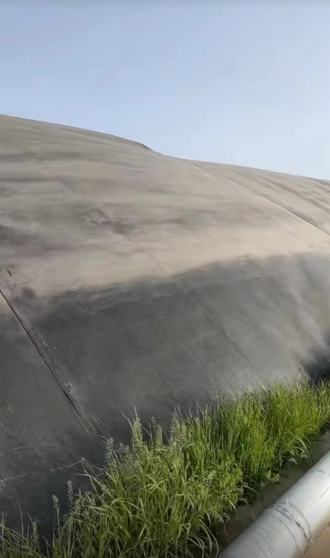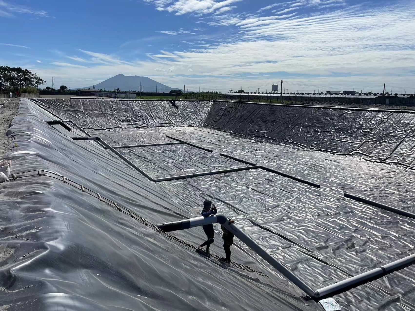 沼气池顶膜铺设:采用1.5mm厚度的黑膜(性能与底膜一样),