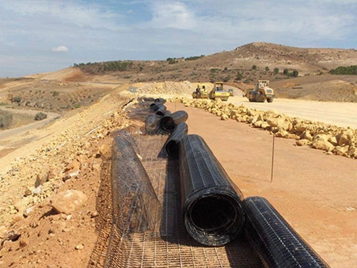 2、经编涤纶土工格栅水利工程中的堤坝、河道的加筋、隔离,加固软土基础,增强其防护能力,提高基础的承载力和稳定性。